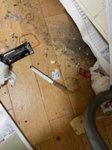 お父様は体調がすぐれていなかったのか、ゴミ屋敷に近い状態となっており、タバコも吸う方なので床もタバコの火で焦げている場所も数か所ありました。