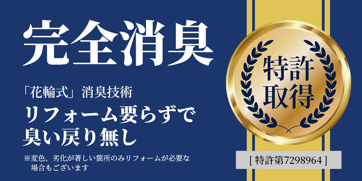 特殊清掃でのシミ・臭いについて こころ屋は 全国花輪式完全消臭連盟(全花連) に加盟し、特許取得済みの「花輪式完全消臭技術」で特殊清掃を行っています。私たちの強みは、リフォームをせずに“完全消臭”を実現できる点です。 こころ屋の特徴 リフォーム不要での完全消臭臭いの元を徹底的に分解し、再発を防ぎます...