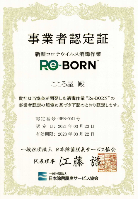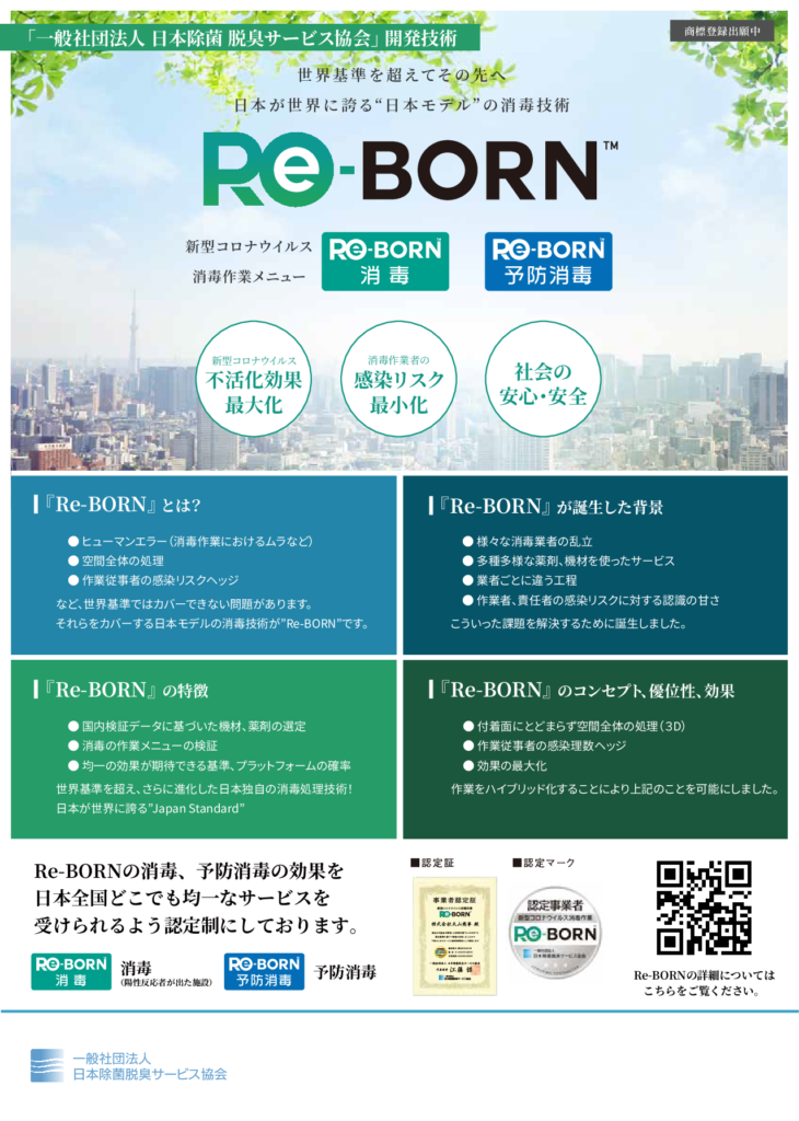 新型コロナウイルス感染症対策の消毒及び予防消毒サービス”Re-BORN”です。