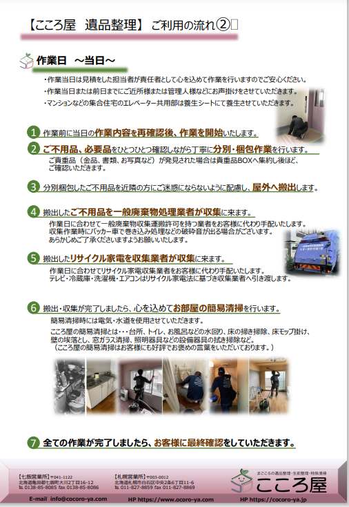 お見積り時~作業日当日~お引き渡し~まで詳しくご説明しております。