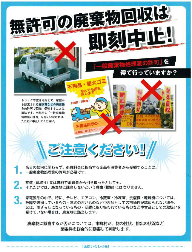 ”違法な不用品回収業者にご注意ください‼”