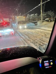 夕方になり晴れ間が出たため、買い物に外出、国道12号線はザクザク・ガタガタで最高でも時速40キロ程度のスピートしか出せない状況でした。